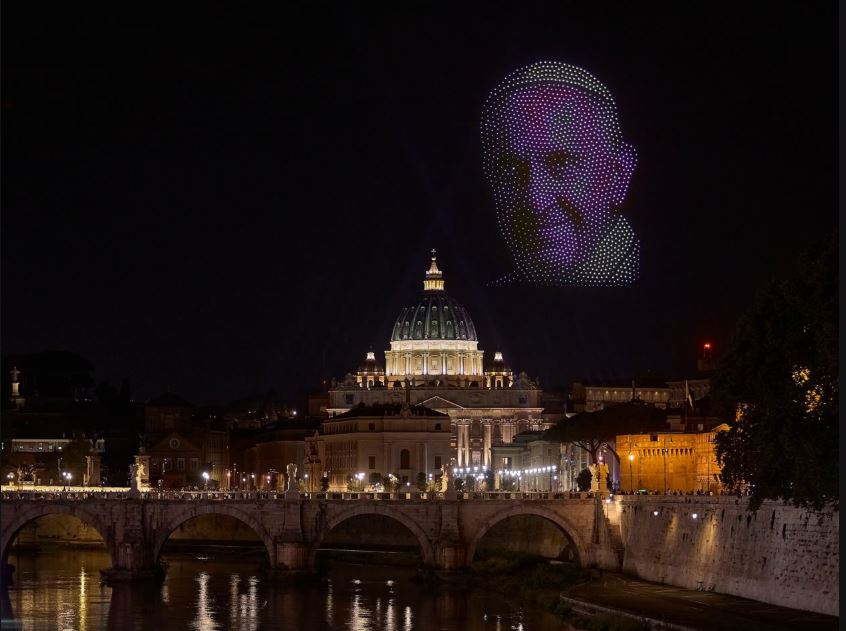 Шоу дронів, найбільше в Європі, було організовано компанією молодшого брата Ілона Маска Nova Sky Stories Кімбала Маска з дозволу Святого Престолу, повідомляє National Geographic.