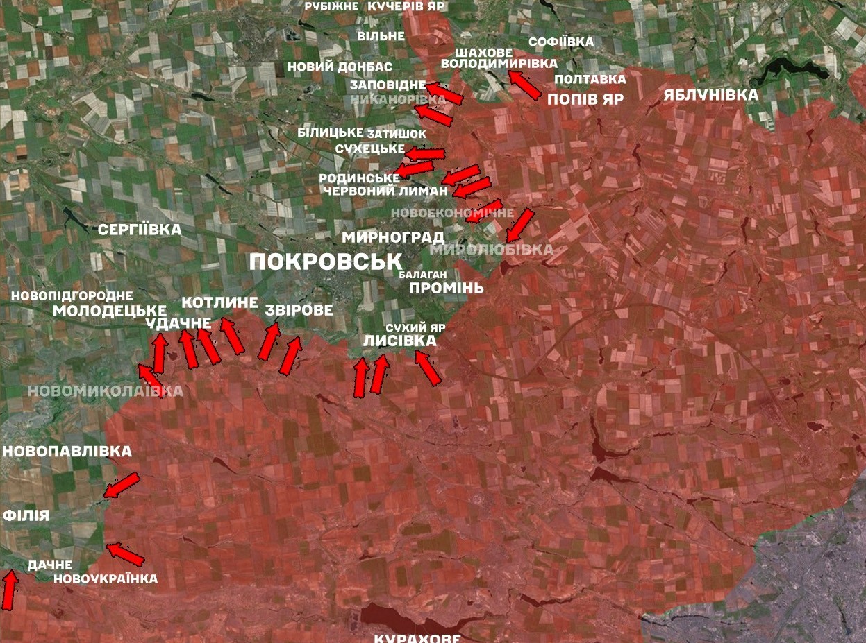 На Покровському напрямку наші захисники зупинили 57 атак агресора в районах населених пунктів Володимирівка, Сухецьке, Звірове, Никанорівка, Золотий Колодязь, Родинське, Червоний Лиман, Миролюбівка, Новоекономічне, Козацьке, Лисівка, Котлине, Удачне, Молодецьке, Затишок та в напрямку Покровська й Філії.
