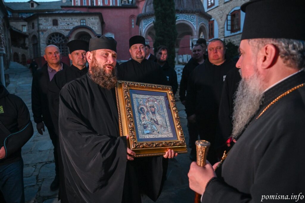 Священноігумен Гавриїл привітав Митрополита і всіх, хто зібрався на молитву, та висловив радість, що колись славне духовне місце у Фалакру завдяки бажанню та праці українців отримує своє відродження. Також Предстоятеля ПЦУ і паломників привітав урядовий губернатор Алківіад Стефаніс, який засвідчив, що Грецька Республіка та її Уряд підтримують благородне і законне прагнення українського народу захищати свою незалежну державу від несправедливої агресії.
