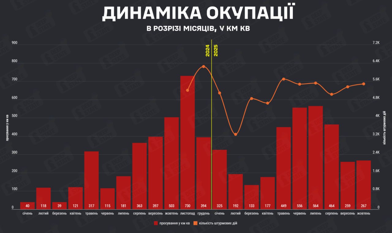 У жовтні ворог окупував 267 кв км української території — DeepState