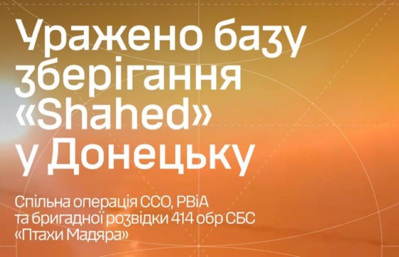 Сили безпілотних систем у взаємодії зі ССО та РВіА уразили базу зберігання, комплектування та запуску БпЛА типу «Shahed» у тимчасово окупованому Донецьку.