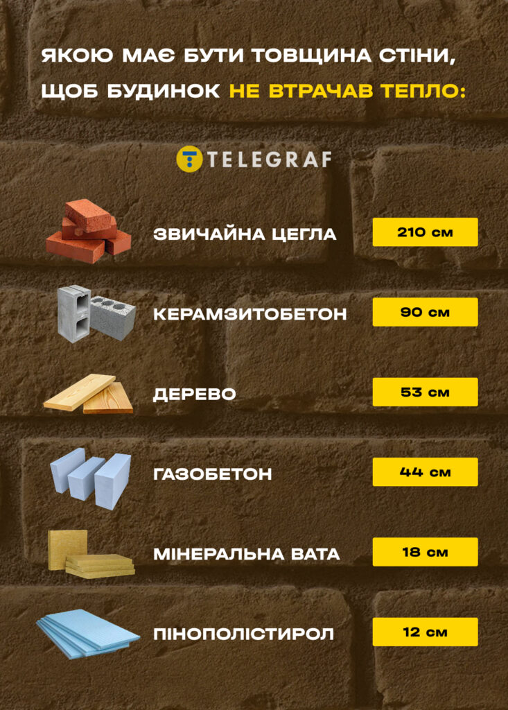 Звідси зрозуміло, чому панельні “хрущовки” з бетонними стінами 14-16 см товщиною промерзають миттєво. Навіть цегляні стіни у 38-40 см далекі від оптимальних 210 см.
