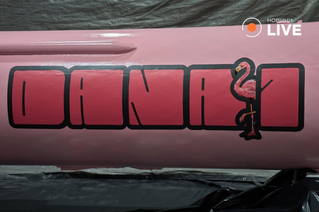 Як повідомляє журналіст Associated Press Єфрем Лукацький, інженери також нанесли на корпус ракети зображення рожевого фламінго та напис Dana-1 — на честь чеської ядерної фізикині Дани Драбової.