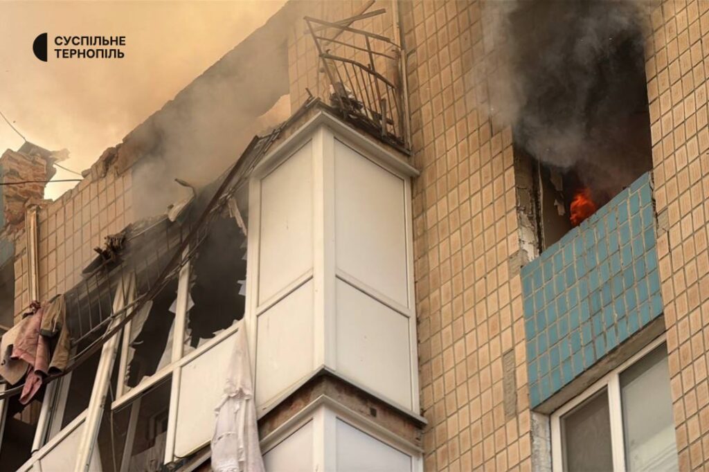 У багатоповерхівці в Тернополі, яка потрапила під обстріл, рятувальники гасять пожежу, попередньо відомо про 2 загиблих, повідомляють кореспонденти Суспільного.