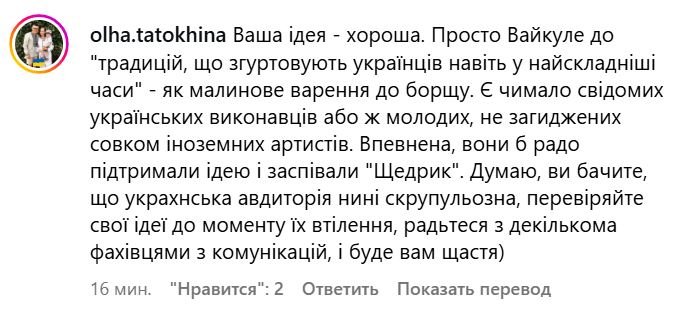 Таки срач національна забава значної частини українців. Вони чомусь вважають, що є дві точки зору – тільки їхня і неправильна. І врешті доходить до маразму і кидає тінь на всіх, бо мати власну думку – безумовне право кожного, але оголошувати монополію на правильність – це вже занадто. Зокрема, визначати, хто має право співати “щедрик”, а хто ні.