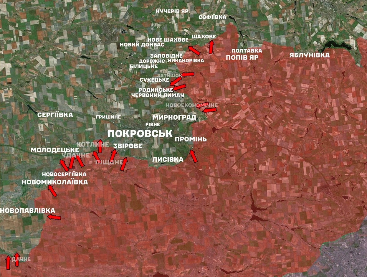 На Покровському напрямку наші захисники зупинили 59 штурмових дій агресора у районах населених пунктів Шахове, Нове Шахове, Затишок, Червоний Лиман, Родинське, Мирноград, Новоекономічне, Піщане, Звірове, Котлине, Удачне, Молодецьке, Новомиколаївка, Дачне та у напрямках Гришиного й Новопавлівки.