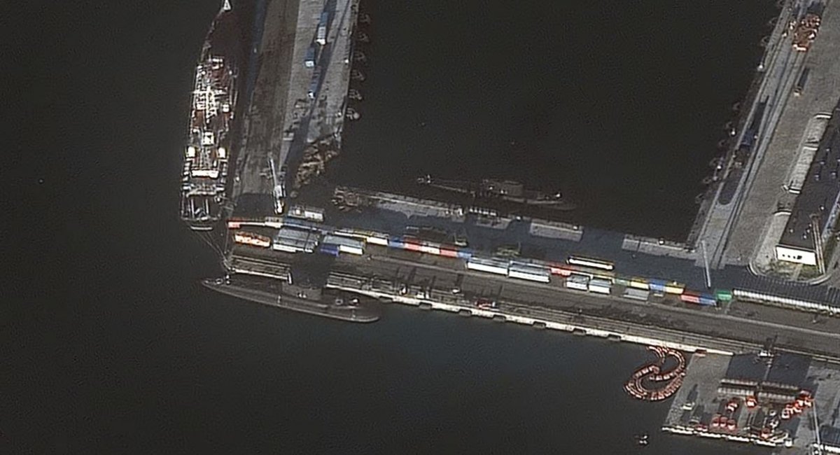 Супутниковий знімок ураженого підводного човна Чорноморського флоту РФ Б-265 “Краснодар”, Б-268 “Великий Новгород” чи Б-271 “Колпино” безальтернативно вказує на затоплення внутрішніх відсіків та критичні ураження після вибуху, що залишив у бетоні вирву у 9 метрів.