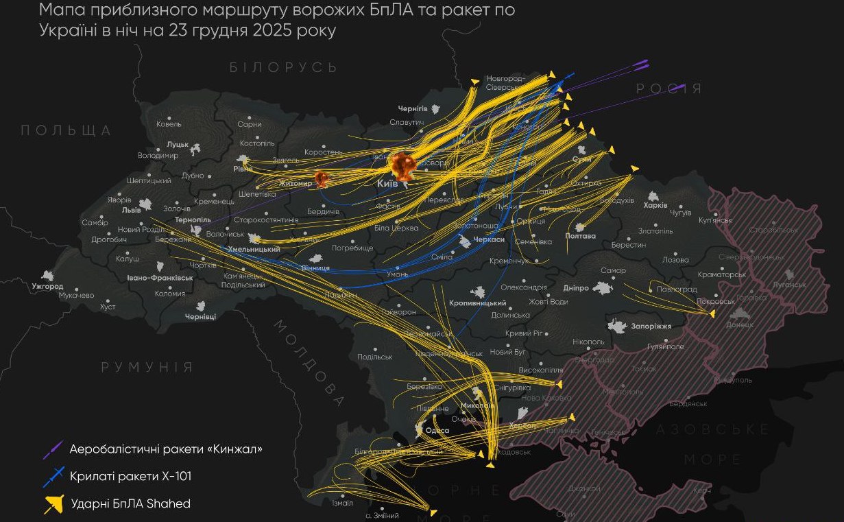 “Це був свідомий, цинічний, російський удар напередодні Різдва. У той час, коли люди готуються до свята, ворог намагався залишити українські родини без світла, тепла і відчуття безпеки. Внаслідок атаки найбільше постраждали енергетичні об’єкти у західних областях України. Через дії ворога по всій території країни вимушено застосовуються графіки аварійних відключень. Вони будуть скасовані одразу після стабілізації ситуації в енергосистемі.