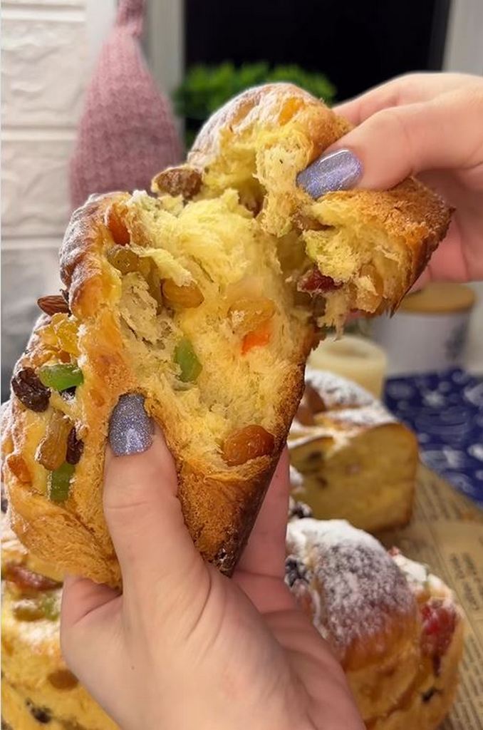 «На відмінну від штолена, його можна і навіть потрібно їсти одразу після охолодження. Максимально здобне та пряне тісто, велика кількість цукатів, горіхів та сухофруктів вас точно закохають з першого кусочка», — вкаже блогерка.