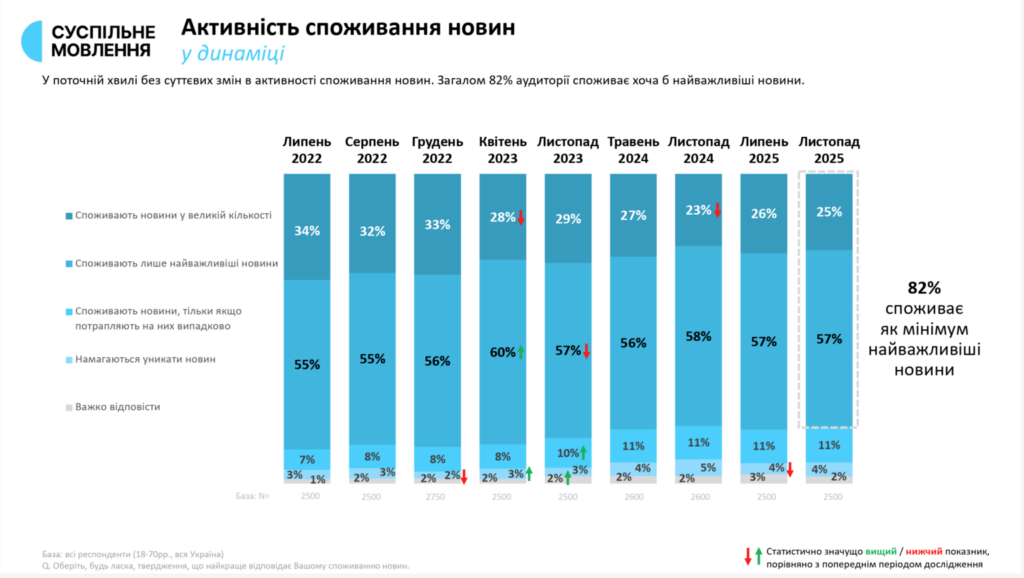 Загалом це означає, що 82% українців залишаються залученими до інформаційного простору, навіть за умов тривалого воєнного напруження.