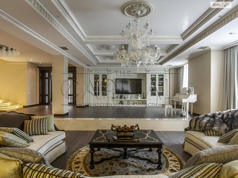 “Втілення стилю, розкоші та досконалості, атмосфера дому дарує відчуття спокою, благородства й царського комфорту”, — так в оголошенні про продаж описують “вишуканий будинок у класичному стилі, створений з використанням найдорожчих натуральних матеріалів”, який продають на 11 сотках столичних Печерських пагорбів.