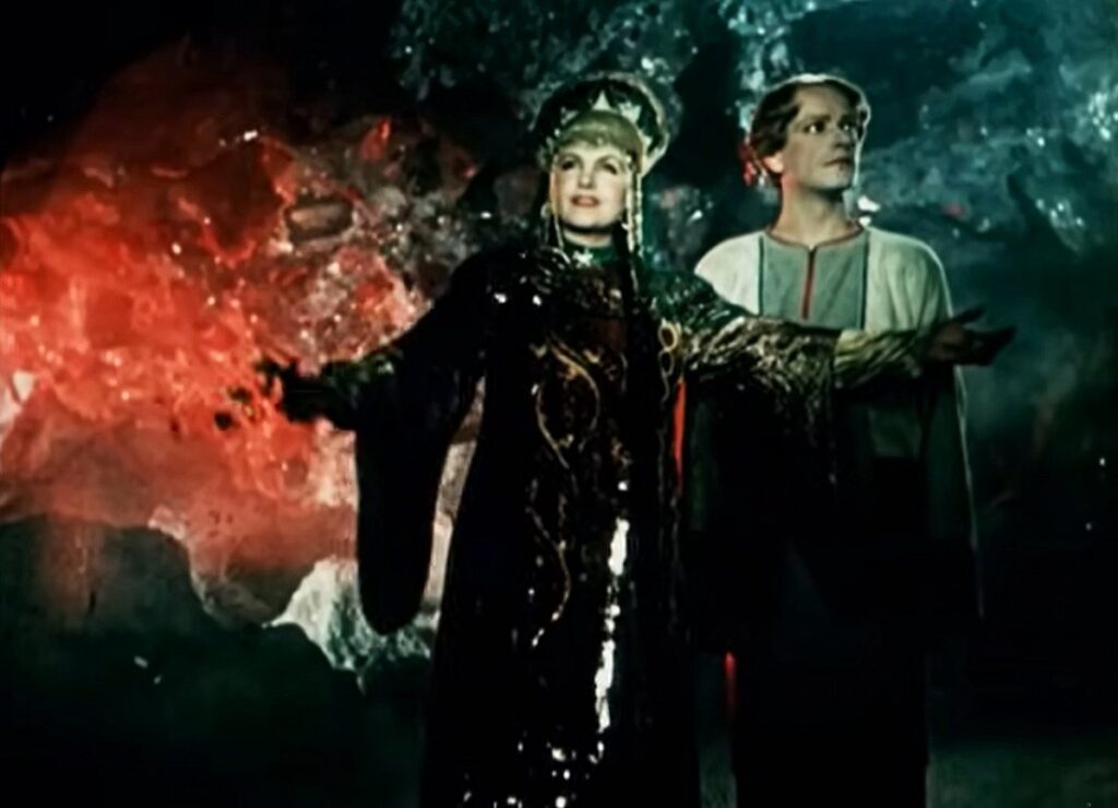 Третьою великою кіноказкою Птушка стала «Кам’яна квітка» (1946) за уральськими казаннями Павла Бажова, фольклориста, а заодно депутата Верховної Ради СРСР (1938–1950). Казання «Мідної гори господиня», «Два ящірки», «Кам’яна квітка», «Гірничий майстер», за якими поставлено фільм, нібито почуті від уральських гірників. Вони стали для цього регіону російським фольклором, що заступив усі інші. Адже Урал — багатонаціональний край, але подібні бажовські казання (Сталінська премія 1943 року) і дорогий, яскравий фільм «Кам’яна квітка» (вперше на якісній кольоровій трофейній кіноплівці, Сталінська премія 1947 року) метафорично приватизували цей регіон. Тобто робили його — у загальному уявленні — виключно російським.