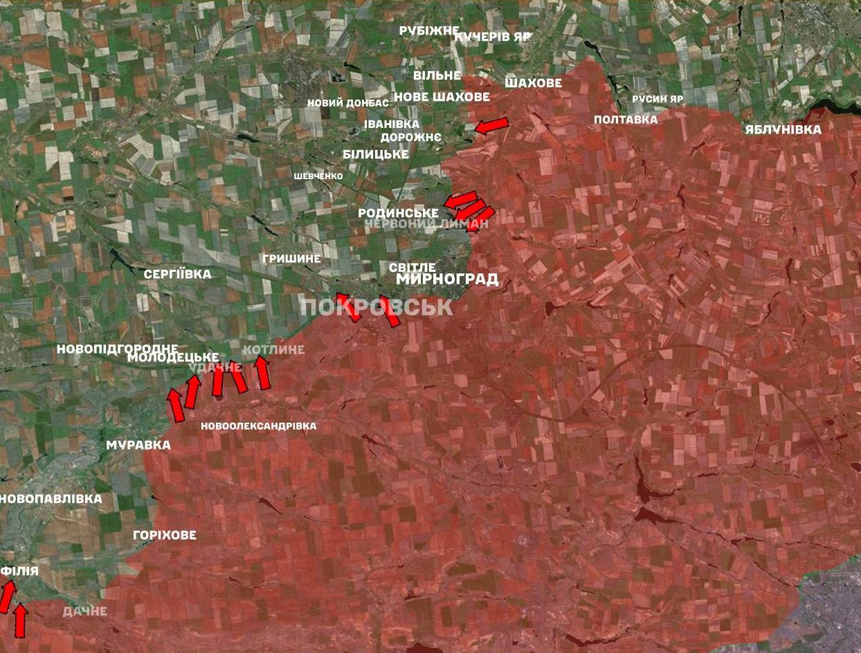На Покровському напрямку наші захисники зупинили 32 штурмові та наступальні дії агресора у районах населених пунктів Покровськ, Родинське, Котлине, Удачне, Молодецьке та у бік Філії, Білицького, Гришиного.