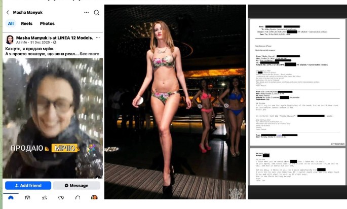 Як доказ жінка опублікувала власне фото, яке, за її словами, міститься у файлах Епштейна, а також скріншоти листування. Вона заявляє, що саме Манюк займалася відбором і направленням моделей з України. У дописі також зазначено, що модельне агентство “Лінія 12” продовжує працювати і під час повномасштабної війни. На момент цього листування Маша Манюк була дружиною Юрія Громницького — речника віцепрем’єр-міністра часів президентства Віктора Януковича Бориса Колєснікова.