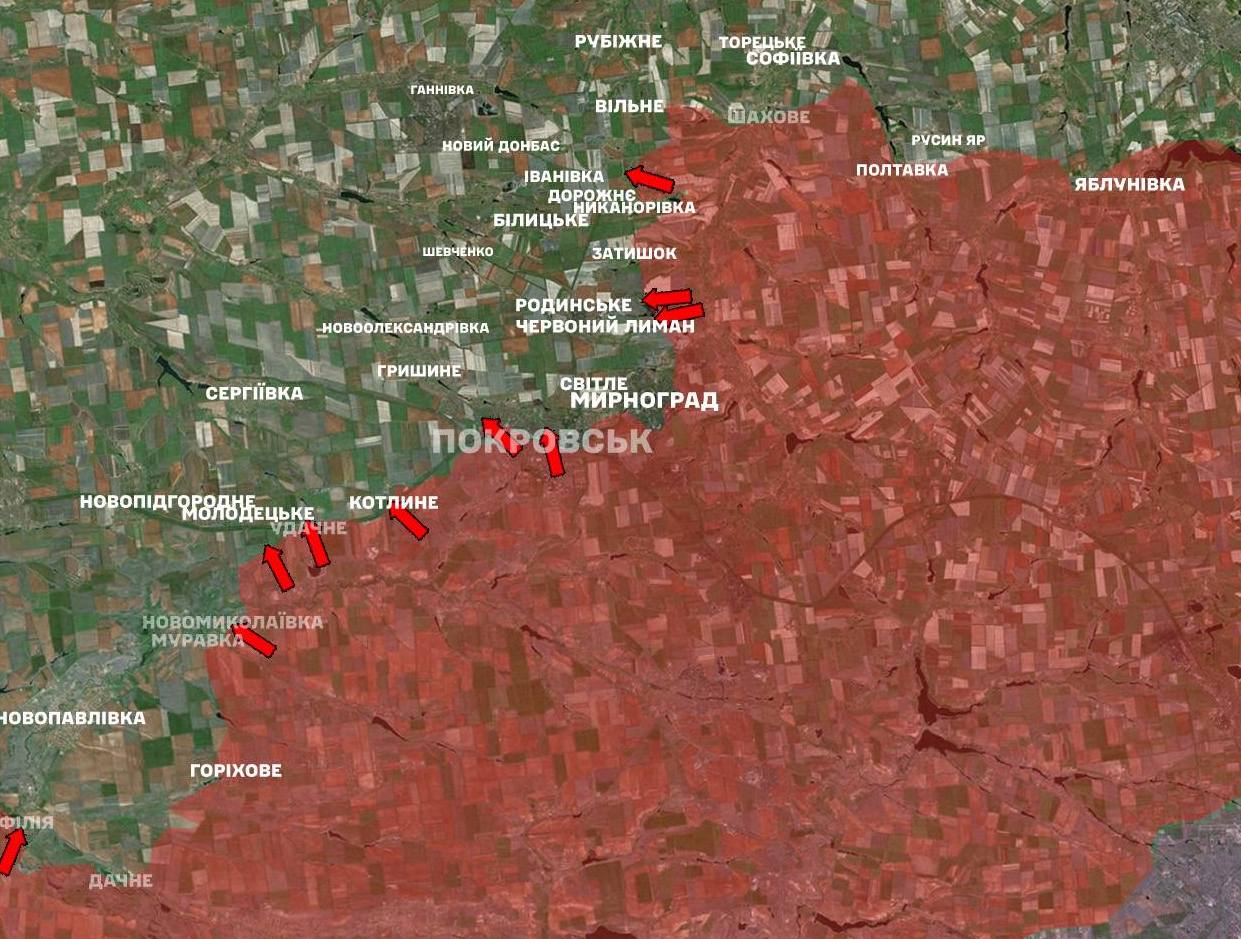 На Покровському напрямку наші захисники зупинили 35 штурмових дій агресора у районах населених пунктів Родинське, Котлине, Покровськ, Удачне, Молодецьке, Новомиколаївка, Філія та у бік населених пунктів Новий Донбас й Гришине.