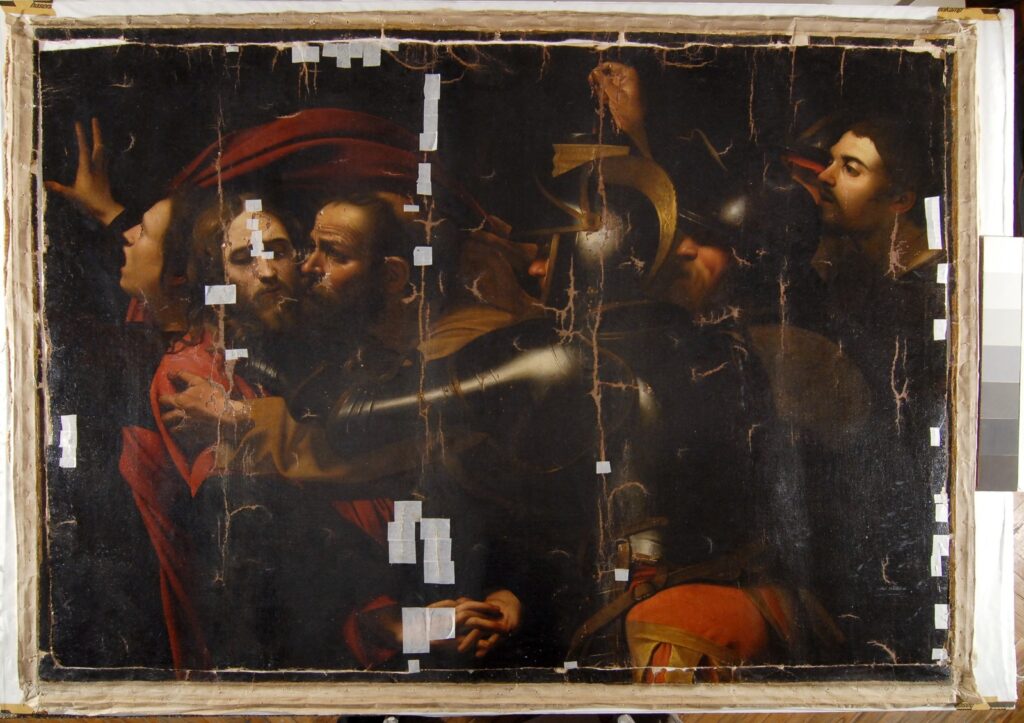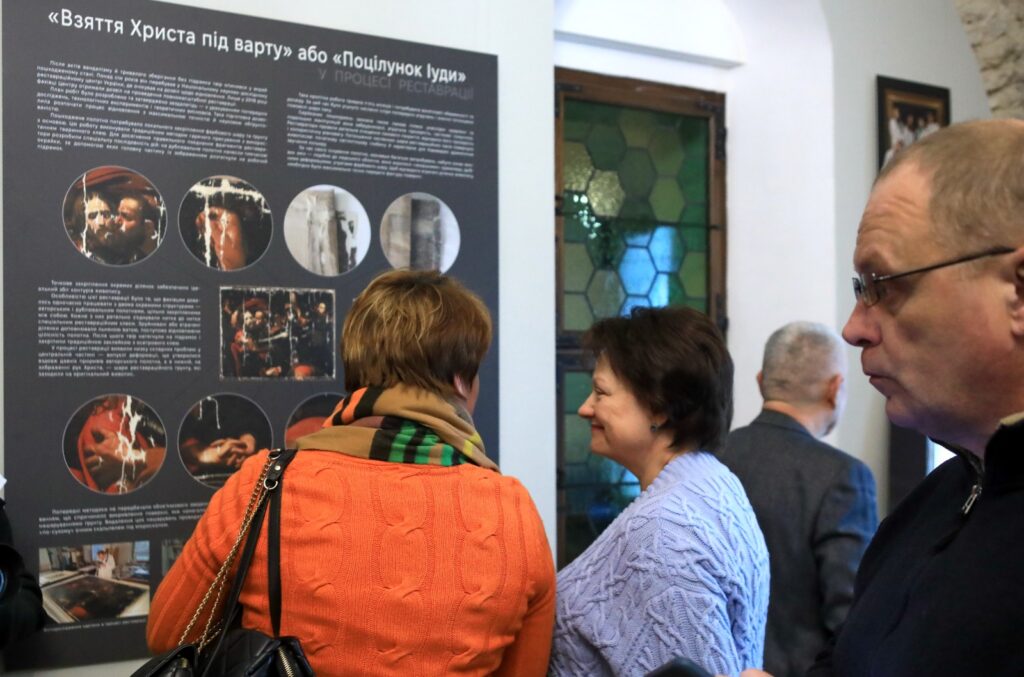 Виставка розповідає історію порятунку картини XVII століття, пов’язаної з ім’ям італійського художника Мікеланджело Мерізі да Караваджо. На полотні зображена євангельська сцена арешту Христа під час зрадницького поцілунку Іуди, який у такий спосіб виказав Його римлянам. Робота вражає глибиною драматизму та витонченим мистецтвом світлотіні – рисами, що яскраво характеризують творчість Караваджо.