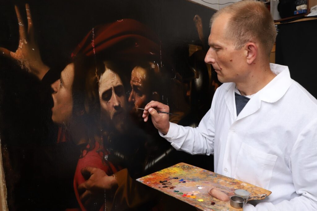 У Національному заповіднику «Софія Київська» відкрився унікальний виставковий проєкт «У світлі Караваджо. Порятунок. Дослідження. Реставрація» — історія відновлення полотна «Взяття Христа під варту» або «Поцілунок Іуди».