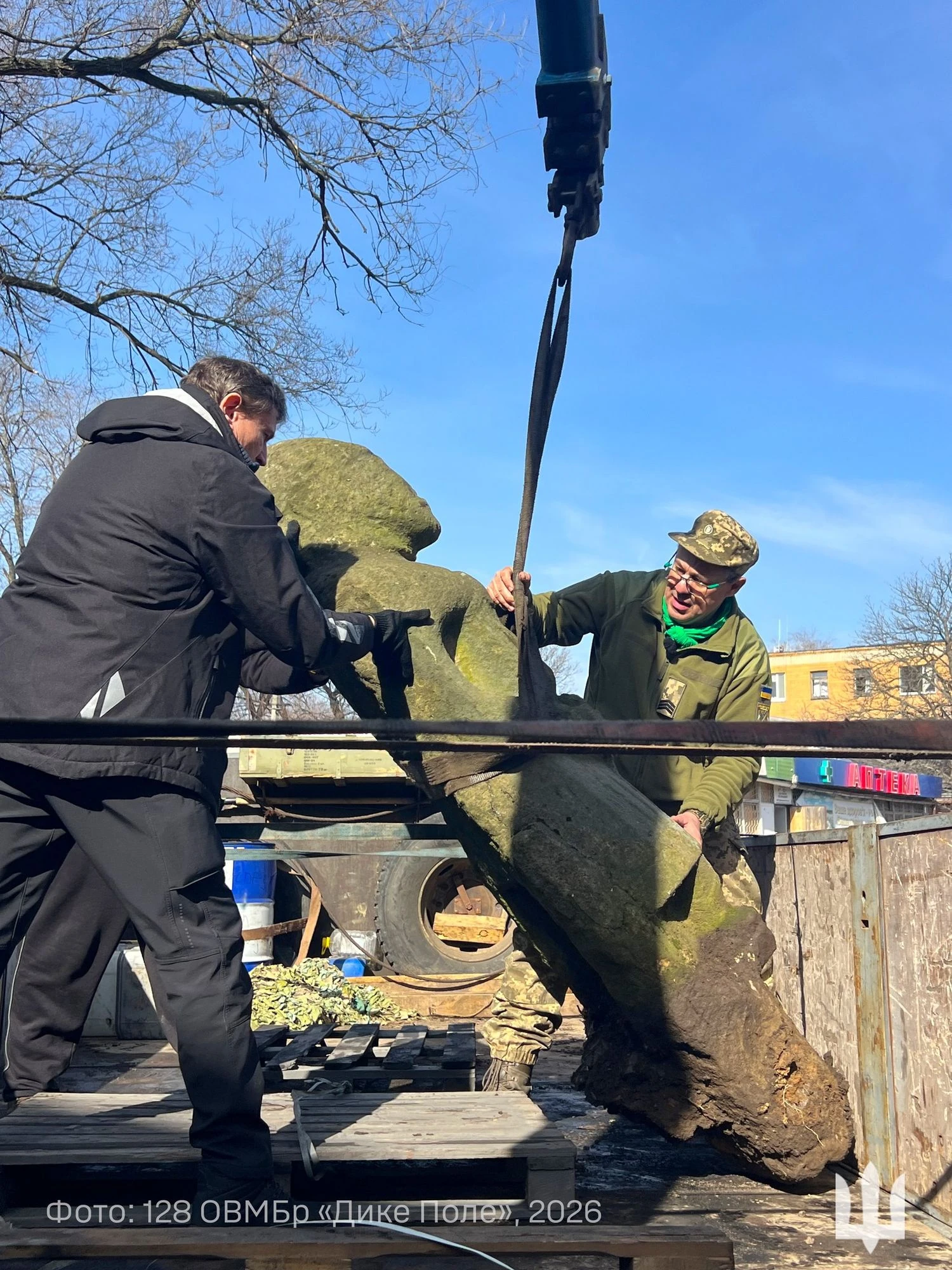 Українські військові евакуювали кам’яних баб з-під ударів російських КАБів на Запоріжжі. Про це повідомили у 128-й окремій важкій механізованій бригаді “Дике Поле”, передає УНН.