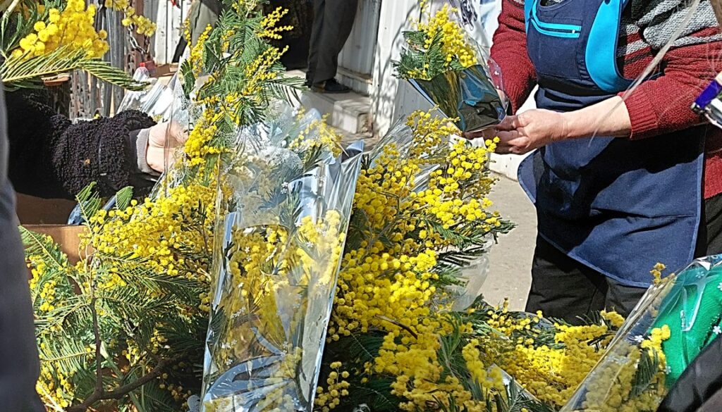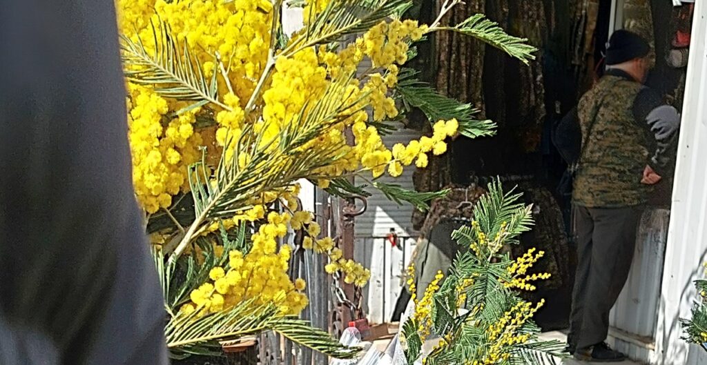 Відкриття цього року – мимоза. Хоча, можливо, цей радянський атрибут 8 Березня був і в минулі раки, можливо, ми не бачили – бо й не дивилася. Але сьогодні мимози було дуже багато. Гілочка – 50 грн., букетик – 80 грн., але ще трохи – і буде дешевше, коли залишиться не кондиція.
