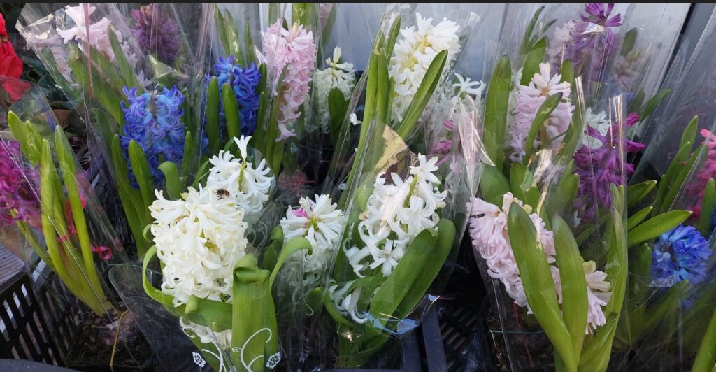 Так само традиційно великий попит на весняні квіти в горщиках. Пахучі гіацинти коштують 200 грн. за штуку, хоча напіврозкриті можна купити і за 120 грн.