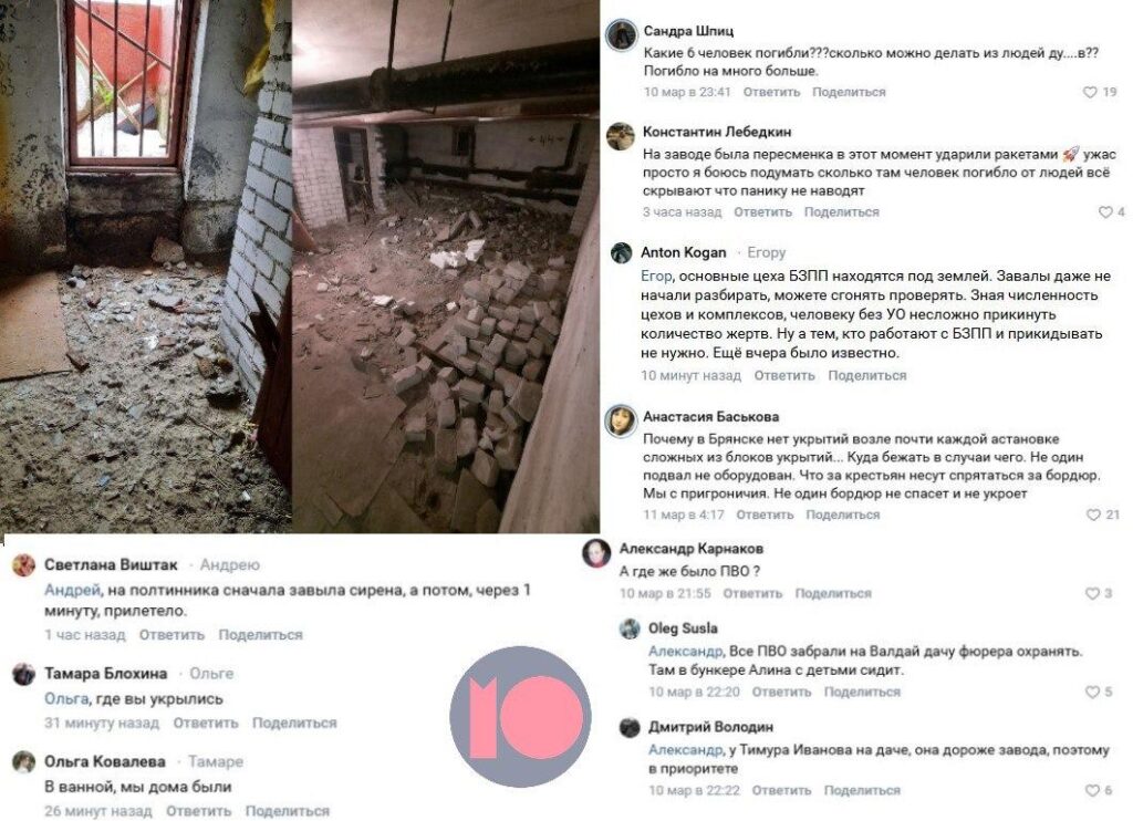 Як повідомляє опозиційне російське видання МО, жителі Брянська обурені відсутністю захисту та укриттів та впевнені у різкому заниженні владою кількості жертв ракетного удару по заводу.