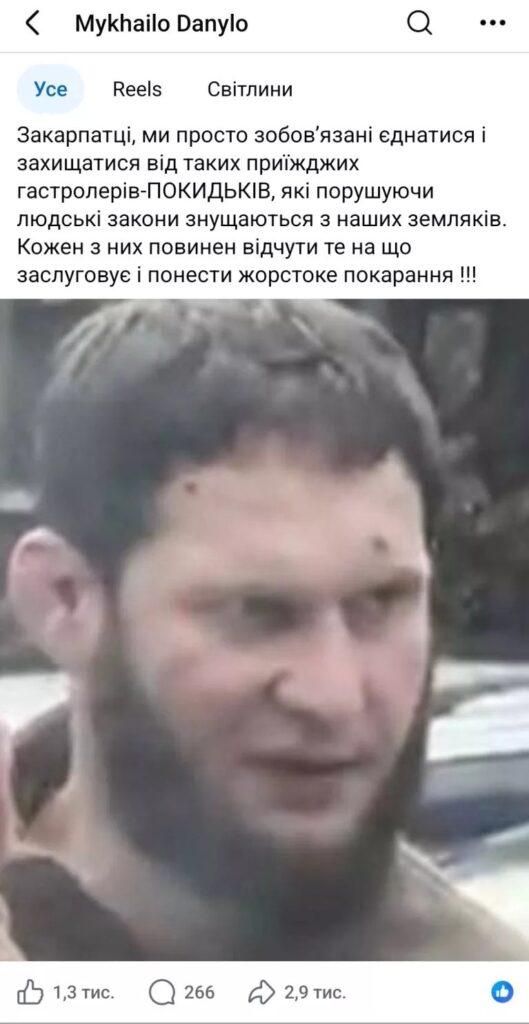 «Ця особа тривалий час ховаючи обличчя за балаклавою працювала вУжгородському РТЦК, порушуючи права наших земляків – викрадала, наносила тілесні ушкодження та тортури нашим краянам відчуваючи безкарність. На теперішній час оголошений у розшук силовими структурами. Ми просто зобовʼязані єднатися і захищатися від таких приїжджих гастролерів-покидьків, які, порушуючи людські закони, знущаються з наших земляків. Кожен з них повинен відчути те, на що заслуговує, і понести жорстоке покарання!», — повідомив спортсмен.