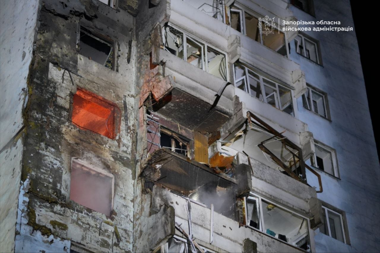 У Запоріжжі одна людина загинула та 5 поранених. Пошкоджені шість багатоквартирних та два приватних будинки, магазин, нежитлові будівлі, об’єкт промислової інфраструктури.