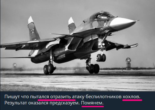 Про це пишуть російські пабліки. Повідомляють, що літак брав участь у збитті українських дронів.