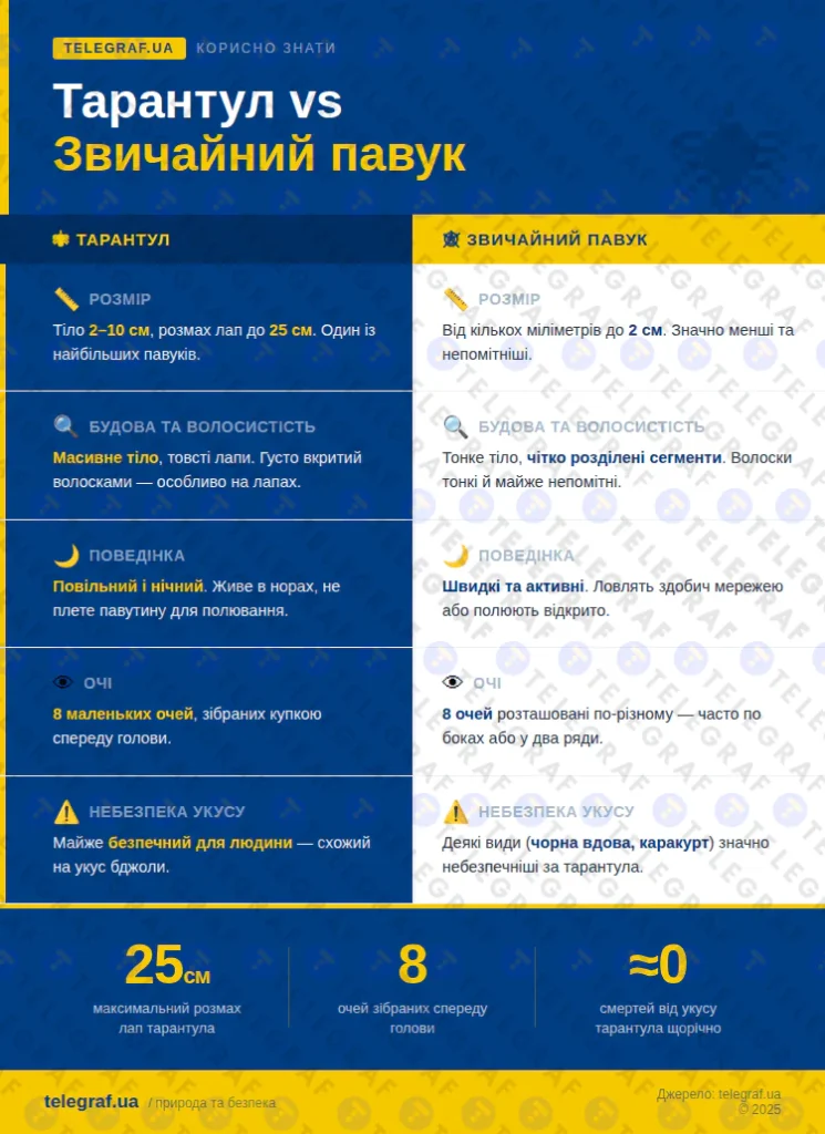 Як відрізнити тарантул від інших павуків. Інфографіка: “Телеграф”