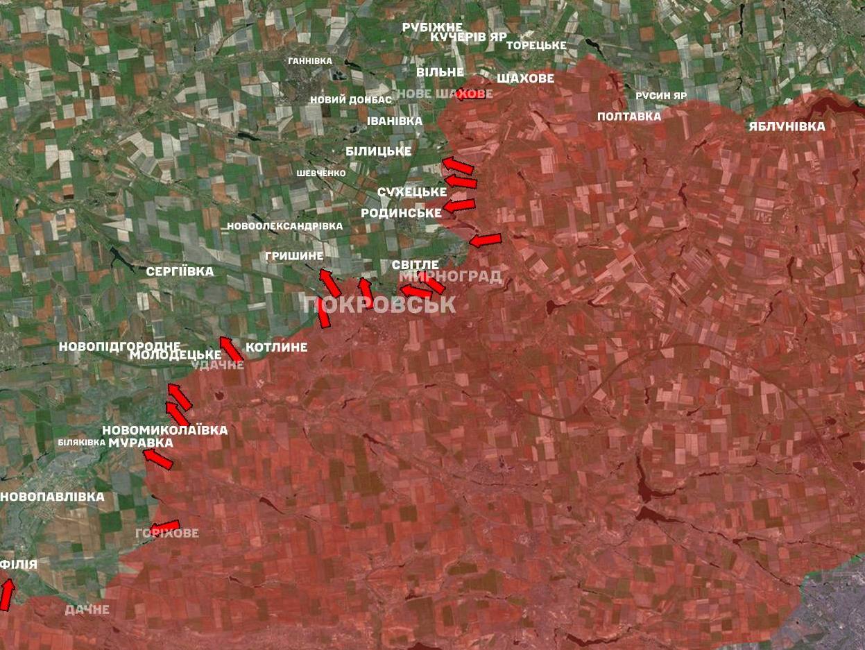 На Покровському напрямку наші захисники зупинили 56 штурмових дій агресора у районах населених пунктів Білицьке, Родинське, Мирноград, Покровськ, Удачне, Новопідгороднє, Молодецьке, Нове Шахове, Муравка, Горіхове та в сторону Гришиного, Філії, Новоолександрівки.