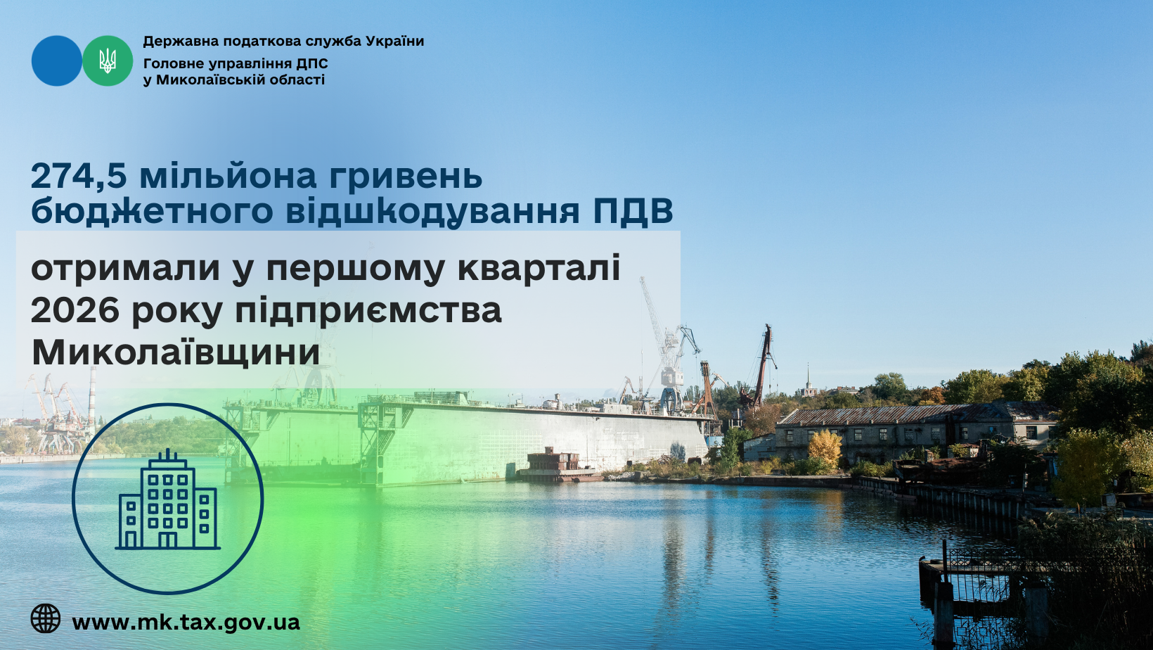 У результаті перевірочних заходів у вказаному періоді з урахуванням попередніх періодів 38 суб’єктам господарювання Миколаївщини (юридичним особам) відшкодовано податку на додану вартість у сумі 274,5 млн грн, 2 платникам (юридичним особам) відшкодовано пеню у розмірі 531,8 тис. гривень.