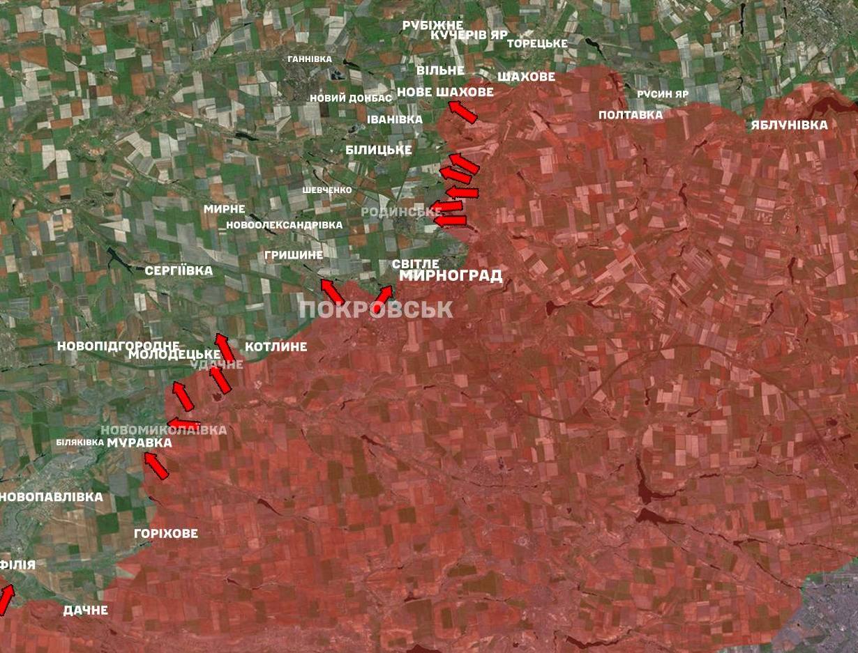 На Покровському напрямку наші захисники зупинили 36 штурмових дій агресора у районах населених пунктів Родинське, Покровськ, Удачне, Гришине, Муравка, Новомиколаївка, Молодецьке, Філія та у бік населених пунктів Новоолександрівка, Нове Шахове, Шевченко, Білицьке, Іванівка.