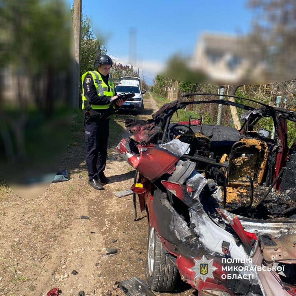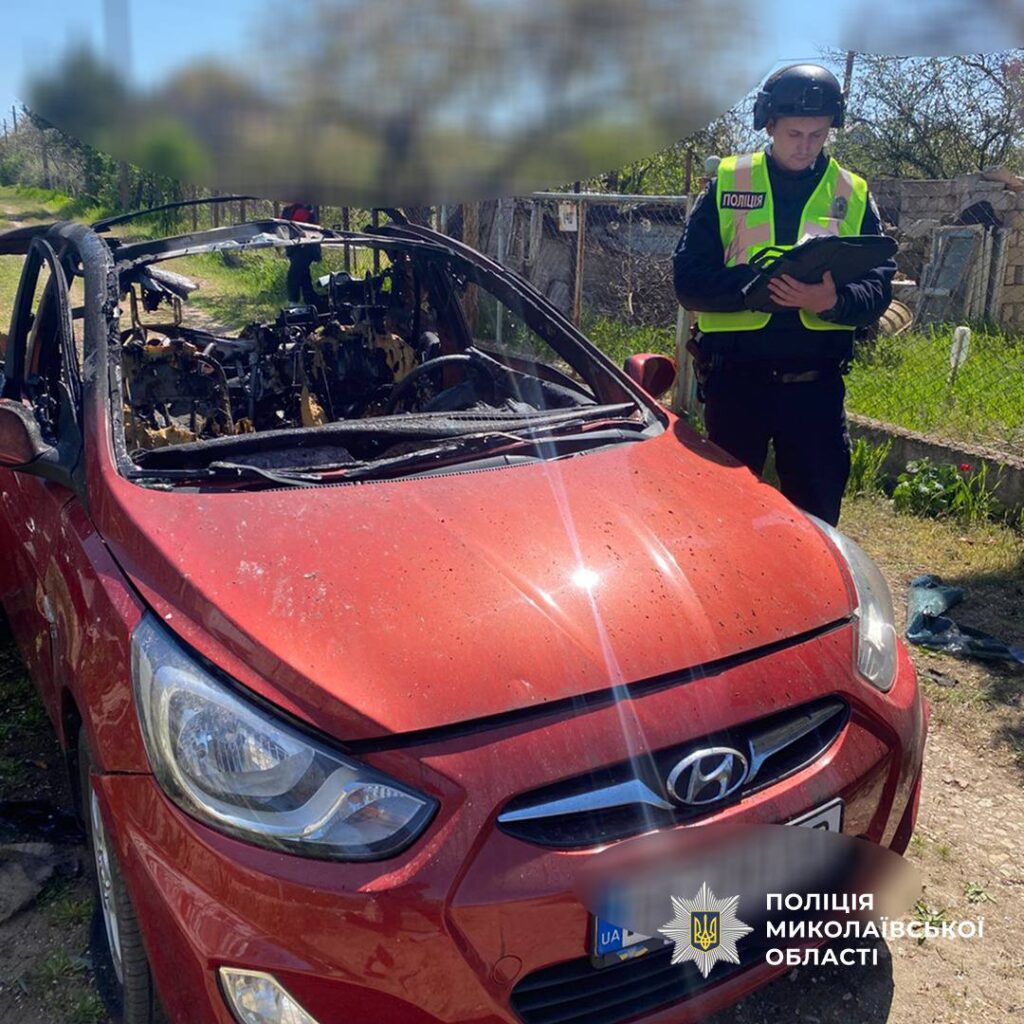Ворожий дрон поцілив у авто – постраждав чоловік. На Миколаївщині поліцейські фіксують наслідки удару та збирають докази воєнного злочину.