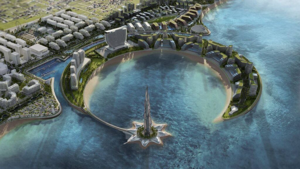 Вежу передбачається звести на насипних островах Sea Breeze, висота проекту 323 метри. Зараз роботи йдуть по створенню острова у вигляді зірки, на якому стоятиме вежа. Вже не перша спроба Азербайджану побудувати штучні острови зі знаковою висоткою, але цього разу план виглядає досить реалістично.