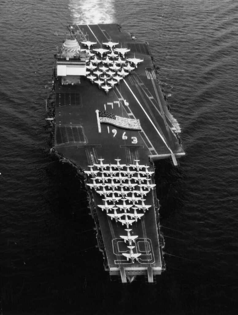 Цей авіаносець був першим атомним авіаносцем у світі, єдиному у своєму класі, що був спущений на воду у 1960 році та прослужив до 2012 року. І він пройшов еволюцію американської палубної авіації з F-8B Crusader, A-5 Vigilante, F-4 Phantom, F-14 Tomcat до F/A-18, взявши участь у більшості військових операцій США з часів Карибської кризи.