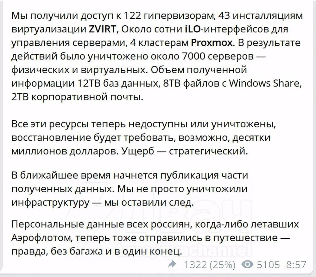 Однак це, швидше за все, робота хакерів. Так, хакерські угруповання Silent Crow і «Кіберпартизани BY» заявили, що знищили IT-інфраструктуру «Аерофлоту».
