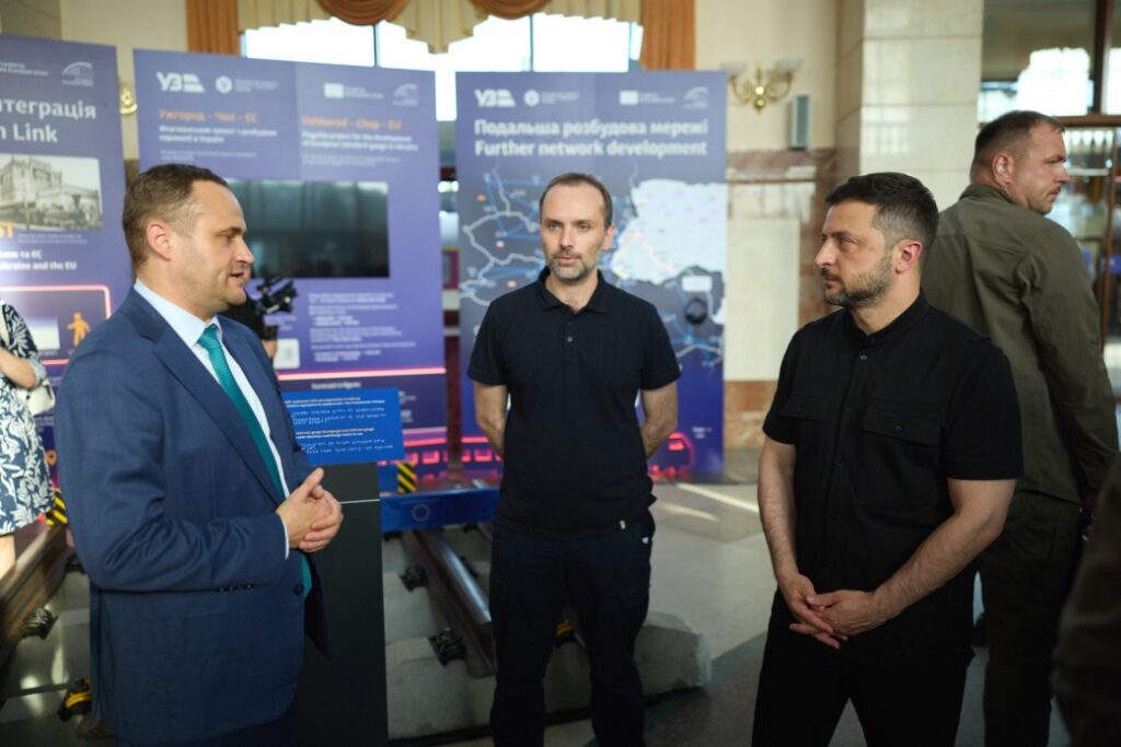 Глава держави заслухав доповіді віцепремʼєр-міністра з відновлення України – міністра розвитку громад та територій Олексія Кулеби й голови правління Укрзалізниці Олександра Перцовського про реалізацію флагманського проєкту з розбудови євроколії в нашій країні. За їхніми словами, протяжність цієї колії 22 кілометри, і попереду ще багато роботи.