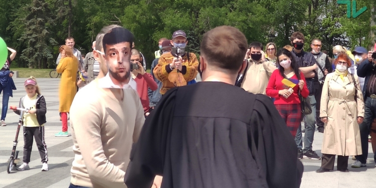 Сегодня, 24 мая, во многих областных центрах Украины состоялась акция, организованная партией “Демократична сокира” и дружественными ей организациями. Как сказано на странице “ДемСокири” в Фейсбук, эта акция – “проти нашого любого президента Зеленського”.